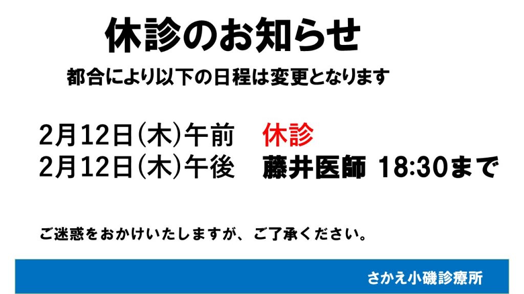 診療変更のお知らせ